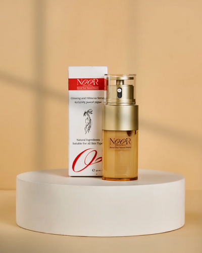 يحتوي سيرم الجنسنج على مستخلصات طبيعية مثل الكركم، الكركديه، والنياسيناميد التي تعمل على تفتيح البشرة وتوحيد لونها.