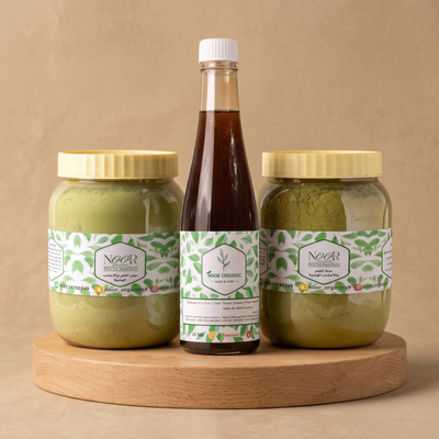 السدر يعمل على تنظيف الفروة وتنشيط البصيلات، بينما تمنح الحناء كثافة ولمعانًا طبيعيًا للشعر غير المصبوغ، ويكمل الزيت الطبيعي العناية بترميم الأطراف وتغذية الشعر، مما يجعلها مجموعة عملية للعناية اليومية أو الأسبوعية.